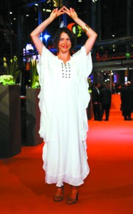 女星耶娜·帕拉斯克,身穿搖曳白裙,頭上插根羽毛,簡直是“雷人”沒商量。興起時(shí)還不忘兩手舉過頭頂,做勝利狀。妮娜·海根則是“雷”冠全場的女星,她頭戴大花化成印度妖女模樣在紅毯上張牙舞爪,敢穿成這樣也是需要勇氣的。