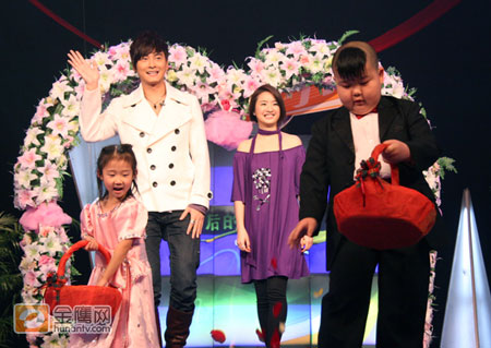 節(jié)目開始錄制,演播廳響起浪漫的結(jié)婚進行曲,在可愛的小伴郎、伴娘的帶領(lǐng)下,鄭元暢、林依晨踩著伴郎、伴娘揮灑的玫瑰花瓣,浪漫登場。也成為《背后的故事》節(jié)目中,第一個踩著玫瑰花瓣上場的嘉賓。