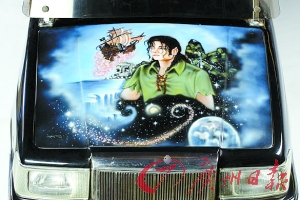 拍賣(mài)物品中引人注目的還有輛黑色電動(dòng)敞篷小汽車(chē),像是件兒童玩具。車(chē)身上描繪著童話(huà)里永遠(yuǎn)長(zhǎng)不大的孩子王彼得·潘的形象。在車(chē)頭引擎蓋上,邁克爾·杰克遜還把自己幻化為彼得·潘的形象,被星光、海盜船和何有鄉(xiāng)的夢(mèng)幻世界環(huán)繞著。