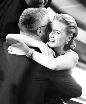 在紅毯上,凱特一襲灰藍(lán)色的曳地長裙,顯得從容雅致。但面對記者的提問,她卻坦言自己非常緊張:“我的父母也來為我助威了,可我還是非常緊張。其實(shí)我的腿在裙子里一直顫抖,只是裙子太長你看不到而已!眲P特開玩笑地說。有記者問她是否準(zhǔn)備了獲獎感言,凱特表示想過:“我還問了我的小孩,如果媽媽獲獎該說些什么,女兒的回答太不靠譜了,兒子則讓我感謝所有幫助過我的人!