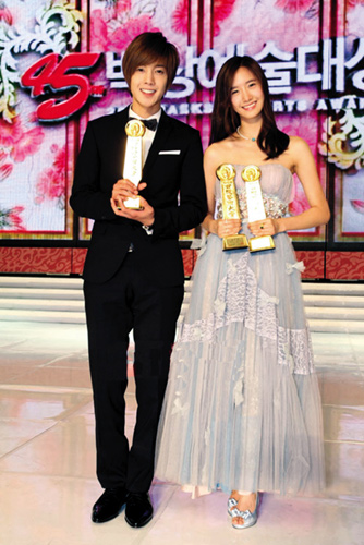 頒獎典禮一開始,李民浩就毫無懸念地獲得電視類男子新人獎,F(xiàn)4的其他三名成員都起身祝賀他。而金賢重所在的組合SS501在頒獎禮上獻唱《花樣男子》主題曲《因為我太傻》以及新專輯主打歌《U R Man》時,現(xiàn)場掀起了高潮。此外,最近憑借新歌《Gee》在歌謠界獲得巨大成功的“少女時代”組合也是當天的人氣王,當成員之一的允兒與金賢重一起獲得電視類人氣獎時,現(xiàn)場粉絲情緒越發(fā)高漲。金賢重領(lǐng)獎時還大吼:“感謝你們!”他表示,從歌手跨界做演員,雖然很累但是遇到了好作品,覺得十分幸運。
