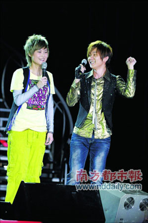 林俊杰成為了本場演唱會(huì)的神秘壓軸嘉賓。他不僅帶來了自己的《小酒窩》,還在臺(tái)上和李宇春同場競技,表演火爆動(dòng)感的斗舞。林俊杰手拿道具槍連番向四周掃射,氣勢不遜江湖大哥;李宇春一身運(yùn)動(dòng)裝扮,在蹦床上展示動(dòng)感青春舞姿。二人默契的配合和各自的精彩演繹掀起了演唱會(huì)的高潮。記者 齊帥 實(shí)習(xí)生 史迎利