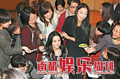在此五天以前,阿嬌做客TVB談話節(jié)目“志云飯局”,TVB總經(jīng)理兼主持人陳志云早已盤問過她與陳冠希的隱秘情史,以及艷照曝光后的心路歷程。而這天,傳媒的火力依然集中在緋聞上:“你有沒有和Juno(麥浚龍)拍過拖?”“Juno有沒有說過要照顧你一生一世?”阿嬌:“沒有!北娙撕鋈挥行┮鈺赜樞。為了轉(zhuǎn)移記者注意力,阿嬌只好主動爆料:前緋聞男友方力申有給她發(fā)打氣短信。有記者又窮追不舍:“那你有沒有和他拍過拖?”阿嬌:“他說沒有??”再被追問:“那你自己說有沒有?”她就默默不再答。