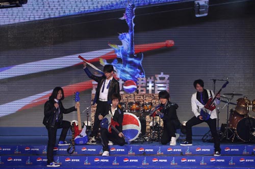 “五月天”也“禮尚往來”,將為“蓋世群音”百事樂隊大賽所特別創(chuàng)作的主題曲之全亞洲首唱奉獻給百事可樂及現(xiàn)場的所有觀眾。