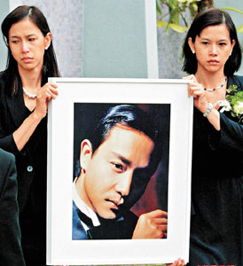 35,2003年4月1日下午4時(shí)30分,哥哥獨(dú)自到中環(huán)文華酒店的24樓會(huì)所,點(diǎn)了飲品及香煙獨(dú)坐。及后步出露臺(tái),寫下遺書后,于傍晚6時(shí)41分一躍而下,結(jié)束璀璨一生。
