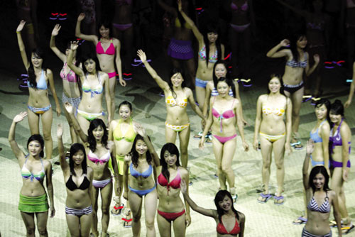 由張藝謀、王潮歌和樊躍“鐵三角”共同執(zhí)導(dǎo)的大型實(shí)景演出———《印象·海南島》,昨晚在?谑杏∠髣(chǎng)首次公演。這是自《印象·劉三姐》、《印象·麗江》“雪山篇”和《印象·西湖》之后的第四個(gè)印象系列作品,也是張藝謀繼北京奧運(yùn)會(huì)和殘奧會(huì)之后推出的首部作品。因?yàn)檠莩鲋杏猩习倜琅展庠〉膱?chǎng)景,有人戲稱:“這是張藝謀在為之前出了‘海灘曬肉’事件的章子怡辯護(hù)!