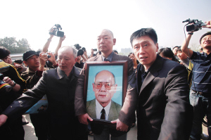 在告別儀式結(jié)束后,汪粵、六小齡童等人接受了記者的采訪!敖裉旌芴厥猓覀兊纳成h(yuǎn)行了,也許是他取經(jīng)累了,所以放下了擔(dān)子,獨(dú)自去了西天,也許他已經(jīng)成了真的金身羅漢!绷↓g童的這番話(huà)仿佛他們依舊在西天取經(jīng)的路上,“閆懷禮的生活和戲中很相像,勤勤懇懇,任勞任怨,對(duì)朋友、長(zhǎng)輩、下一代都很和藹,是我們的表率。我們都在等著看暑期播出的《吳承恩與西游記》,盡管他沒(méi)參加,但一直很關(guān)注這部戲。原本他還要在我的電影《大鬧天宮》里出演一個(gè)角色,但現(xiàn)在已經(jīng)成為永久的遺憾,但我會(huì)積極地把電影拍出來(lái),告慰他在天之靈。此外,他生前也曾積極推動(dòng)‘西游記主題公園’的修建,我們也會(huì)幫助他完成遺愿。”“唐僧”之一汪粵回憶說(shuō),“27年前,我和六小齡童在人藝的院子里見(jiàn)到了他,他正在悠著雙杠,身體很健康,我們當(dāng)時(shí)就缺一個(gè)沙和尚,那一眼就都定了閆懷禮,也因此成就了《西游記》的師徒四人。主題歌第一句‘你挑著擔(dān)’,唱的就是他,雖然他年齡大,但卻是小師弟,27年前那么健壯,如今卻躺在靈柩里,太遺憾了!瘪R德華和閆懷禮感情特別好,但他似乎因?yàn)樽约哼t到了兩分鐘沒(méi)有見(jiàn)上閆懷禮最后一面而耿耿于懷,所以昨天他的話(huà)特別少,只是一個(gè)勁地感謝大家,表示一切都由大師兄(六小齡童)代為表達(dá)。記者 王琳/文 鄒紅/攝