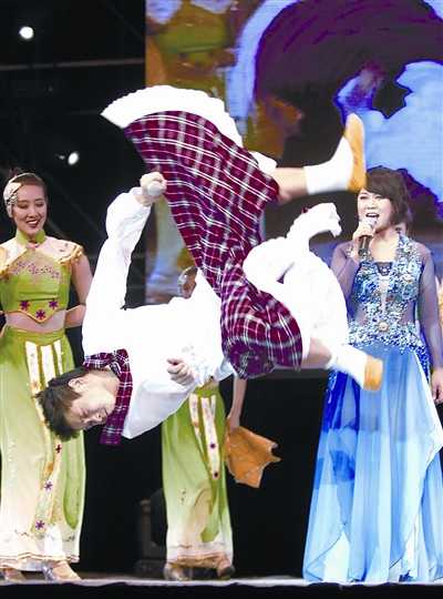 小沈陽(yáng)人氣非常之高,現(xiàn)場(chǎng)上座率達(dá)到9成,連兩側(cè)看不到舞臺(tái)的地方都坐滿(mǎn)了人。主辦方透露,小沈陽(yáng)的票出了8成之多,這在以往實(shí)屬罕見(jiàn)。大部分的觀(guān)眾都沖著小沈陽(yáng)而來(lái),前面1個(gè)半小時(shí)的表演里,大家雖然笑是笑,但是只有小沈陽(yáng)走到舞臺(tái)上時(shí),全場(chǎng)氣氛才為之沸騰。有粉絲上臺(tái)去獻(xiàn)花、強(qiáng)吻小沈陽(yáng),這可都是別的演員享受不到的待遇哦!老實(shí)說(shuō),小沈陽(yáng)表演的確很賣(mài)力,不管是吼《死了都要愛(ài)》還是唱《大海》甚至是表演《明星與粉絲》的段落,但是在側(cè)面觀(guān)看小沈陽(yáng)的表情時(shí),記者幾次都發(fā)現(xiàn)他在拼命的眨眼睛,似乎要趕走隨時(shí)而來(lái)的睡意。