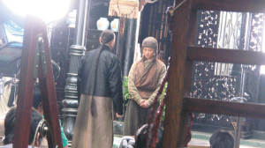 據(jù)了解,這兩張現(xiàn)場(chǎng)照是李宇春第一次進(jìn)組拍攝時(shí)所拍。第一場(chǎng)戲,劇組給她安排的是相對(duì)比較輕松的文戲:爸爸“流亡將軍”任達(dá)華死后,她去找組織義士的“老爺”王學(xué)圻問(wèn)個(gè)究竟。雖然是文戲,但也不簡(jiǎn)單,李宇春要演出那種爸爸死后自己幾天幾夜不睡覺(jué)傷心憔悴的狀態(tài)。據(jù)說(shuō)李宇春當(dāng)時(shí)不知戲份,還被監(jiān)制陳可辛調(diào)侃了一番:“春春你昨晚睡覺(jué)了沒(méi)?”李宇春不明就里:“我睡了啊,睡得很好,精神很好。”陳可辛撲哧一聲就笑了出來(lái):“哎呀,你不睡才好啊!本瓦@么幾句話,讓李宇春緊張無(wú)比。首場(chǎng)戲雖然只有一句臺(tái)詞:“我要見(jiàn)你們家老爺。”可李宇春說(shuō)了整整10遍才通過(guò)。