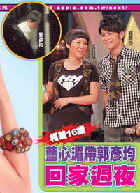據(jù)悉,郭彥均和藍心湄私交不錯,數(shù)月來也常上《女人我最大》節(jié)目,成為頗具知名度的通告藝人,下了節(jié)目兩人也常在一起,不是去吃飯就是去喝酒,而活動結(jié)束后,郭彥均就單獨回到藍心湄家,過著只有兩人的夜晚,藍郭過從甚密的說法因此傳開。