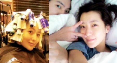 5日下午,金喜善把清晨剛醒時(shí)與丈夫一起躺在床上的照片放到了自己的“迷你小窩”博客中。照片中的金喜善雖然是一幅還沒睡醒的面容,嘴角卻掛著甜美的微笑。她在留言里撒嬌地說:“被電話鈴聲催醒了。本來可以再睡一會(huì)兒的……”,讓人忍俊不止。