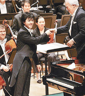 中新網(wǎng)1月29日電 著名鋼琴家李云迪前晚(1月27日)與指揮大師艾度·迪·華特(Edo de Waart)合作,這是他成為香港居民后首次在香港公開演出,他坦言感覺特別,更獲張王幼倫贈(zèng)送獨(dú)一無二的黑白鉆襟針。