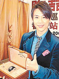 前天,陶喆出席了“1,2,3!我們都是木頭人”世界巡回演唱會香港站的記者會,會上獲歌迷送上“樂壇教父”牌匾,又獲贊助商贈送一只價值10萬元的名牌腕表,懂多國語言的陶喆更將手表型號的西班牙文當(dāng)場翻譯出來,原來是“征服者”的意思。