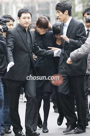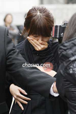31日上午9時(shí)在首爾大峙二洞教堂舉行了著名演員李東健弟弟的葬禮彌撒。李東健的前女友韓智慧流著眼淚走出教堂。(圖片來(lái)源:韓國(guó)《朝鮮日?qǐng)?bào)》)