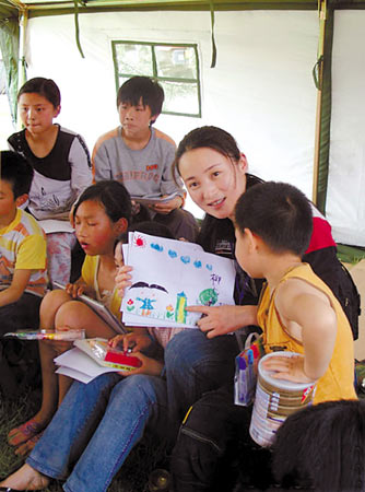 蔣勤勤跟隨全國婦聯(lián)“母愛在行動”小組奔赴四川重災(zāi)區(qū)綿陽,已經(jīng)身為人母的她得知地震之后,首先想到的就是災(zāi)區(qū)的兒童,當(dāng)?shù)弥獮?zāi)區(qū)緊缺奶粉等嬰兒食品時,她特意帶去了價值10萬元的奶粉和牛奶。在災(zāi)區(qū)的幾天走訪,蔣勤勤主要探訪了災(zāi)區(qū)懷孕的準(zhǔn)媽媽和失去雙親的孤兒。蔣勤勤透露,災(zāi)區(qū)目前急缺的除了帳篷和藥品,許多生活必需品也非常匱乏,她此行就了解到,災(zāi)區(qū)就急需各種女性生理用品。