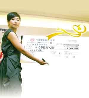地震發(fā)生后演藝界的明星紛紛捐款獻(xiàn)血,林憶蓮昨天一出場(chǎng)更是一句沒有寒暄,就直接通過江蘇省紅十字會(huì)向四川災(zāi)區(qū)人民捐款10萬元。昨天記者到達(dá)現(xiàn)場(chǎng)時(shí),每個(gè)人的手臂上都被系上了一條黃絲帶,發(fā)布會(huì)最感人的一幕莫過于林憶蓮帶領(lǐng)全場(chǎng)所有人在平安樹上系上滿載美好祝愿的黃色絲帶,在舒緩的音樂聲中她閉上雙眼默默為災(zāi)區(qū)人民祈福。緊接著她還宣布:“觀眾每購買一張本場(chǎng)演唱會(huì)的門票,我們就會(huì)有5塊錢捐給災(zāi)區(qū)群眾,雖然5塊錢不多,但這是我們和歌迷的一份心意”。昨天晚上,主辦方還舉辦了慈善拍賣會(huì),主辦方特別準(zhǔn)備了40張最前排的演唱會(huì)門票公開拍賣,演出冠名商更是以慈善的名義邀請(qǐng)到其諸多客戶參加拍賣會(huì),而林憶蓮也拿出自己珍藏的2套演出服裝進(jìn)行拍賣,“我今天做的其實(shí)是非常小的事情,但是通過這個(gè)活動(dòng),我看到了所有參與人員大大的愛心,我想我會(huì)一直都記得今天南京人帶給我的感動(dòng)”。最后門票與兩件演出服共拍得137000元,這些善款也將全部捐給災(zāi)區(qū)。