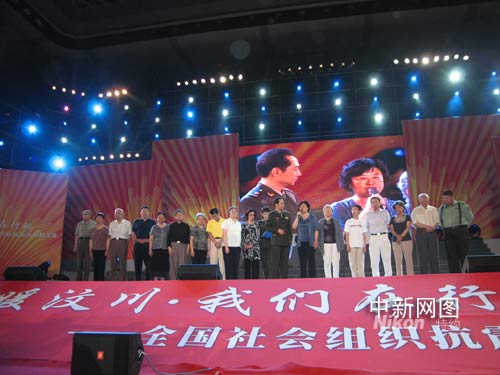 中新社北京五月二十六日電 (記者 淮黎霞) “情暖汶川•我們?cè)谛袆?dòng)----全國(guó)社會(huì)組織抗震救災(zāi)募捐活動(dòng)”昨晚在北京首都體育館舉行。