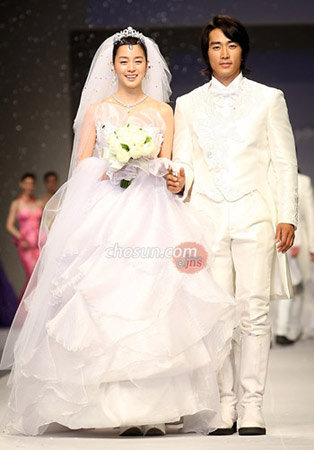 中新網(wǎng)5月27日電 據(jù)朝鮮日報(bào)報(bào)道,26日下午,安德烈-金“2008聯(lián)合國兒童基金會后援之夜”特別服裝秀在忠清北道青南臺垃圾藝術(shù)公園舉行。當(dāng)天,韓流明星宋承憲、金泰熙作為模特登臺走秀,在舞臺上演繹了幻想的愛情故事。