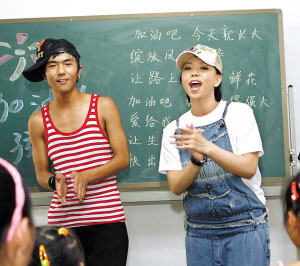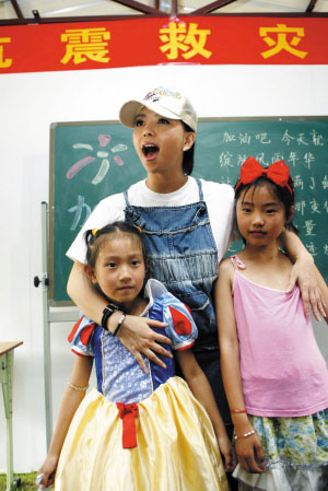 李文害羞地告訴張惠妹,他今年16歲,在都江堰上學的時候就跟著老師學唱歌,去年還參加了一個新人比賽拿了全國第二,當時的評委老師當場就收他為徒!翱上Оl(fā)生了地震,我不能再學唱歌,現(xiàn)在我喜歡和四川音樂學院的志愿者老師們在一起,他們可以教我唱歌!甭牭嚼钗倪@么說,張惠妹當下就表示:“這樣吧,我回臺灣后會跟公司商量一下,我打算收你為徒弟!”