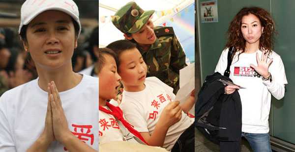 中新網(wǎng)6月2日電 四川大地震發(fā)生二十天來,演藝圈抗震救災的熱情空前高漲,越來越多的明星參加各種賑災活動,前往災區(qū)送溫暖。明星總是人們愿意關注的焦點,這些明星在受到贊賞的同時,也遭到“作秀”的質(zhì)疑。高調(diào)捐款有炒作嫌疑,低調(diào)捐款被誤認冷漠,領養(yǎng)孩子被視為炒作,深入災區(qū)被當作虛偽,明星真的好難當,下面我們回顧下這些天明星赴災區(qū)的事跡。