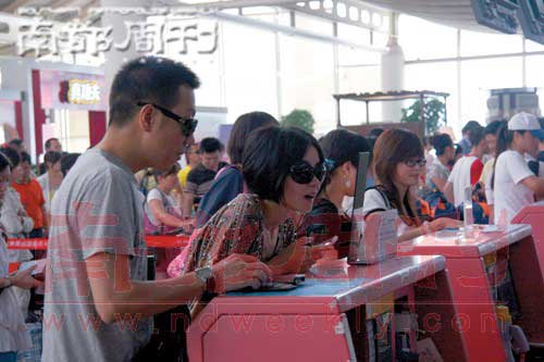 7日上午10點(diǎn),因?yàn)橐箽w而取消靈隱寺之行的王菲出現(xiàn)在酒店大堂,與李亞鵬及助手前往酒店西餐廳吃飯,看到仍有癡心歌迷守候,王菲語調(diào)溫柔地說:“你們快別跟了,別跟了!边關(guān)切地問:“你們今天不用上班嗎?”吃完餐出來,仍有歌迷要求合影簽名,王菲想了想說:“你們等我十分鐘,我整理一下馬上下來!焙芸,王菲就和李亞鵬一起帶著大堆行李返回大堂,坐到歌迷身邊,握手、簽名、合影,對于歌迷的所有要求王菲都有求必應(yīng)。