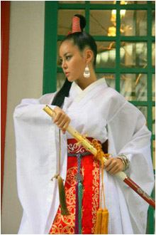 看到這張照片的網(wǎng)民紛紛指出:“雖說這款服裝是以韓國女戰(zhàn)士為主題設(shè)計的,但看上去帶有濃郁的日本風(fēng)。服裝讓人聯(lián)想起和服,發(fā)型也是日本武士風(fēng)格!