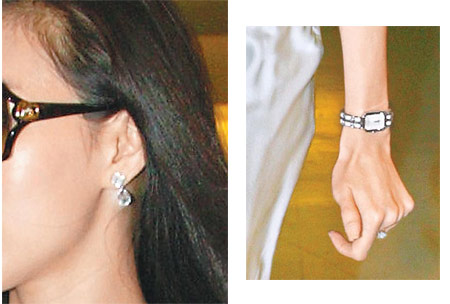據(jù)臺(tái)灣媒體報(bào)道,曾馨瑩左手無(wú)名指戴大鉆戒,珠寶專家目測(cè)約10克拉,價(jià)值超過6000萬(wàn)元,而她左手腕戴的雙排鉆煉表,估計(jì)約1700萬(wàn)元,手提約19萬(wàn)200元的愛馬仕“Lindy”包。外傳她赴港是為采買婚禮禮品。雙排鉆煉表、鉆戒和鉆石耳環(huán),估計(jì)價(jià)值逾7700萬(wàn)元。