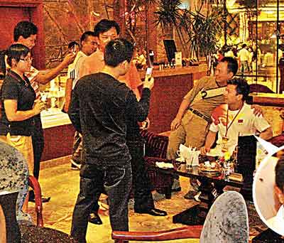 舉重選手張湘祥相約友人在酒店咖啡室見面,卻被男fans坐身邊攝影合照。