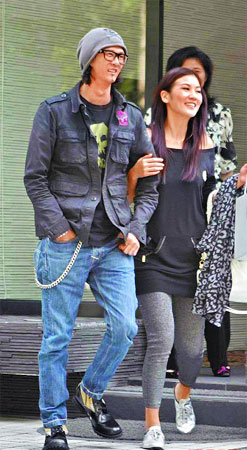 離開珠寶店時宋新妮(右)興奮地挽著Andy,小兩口笑得很開心。