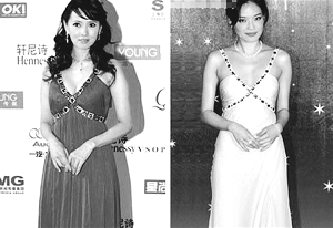 “山寨禮服”成為網(wǎng)友關(guān)注的熱點后,眾女星的山寨行為被細心網(wǎng)友曝光,其中也包括正惹上“婚變”的伊能靜,她去年在上海參加某時尚活動時身穿的藍色禮服被指“山寨”自范思哲為舒淇量身定做的全球獨一無二的灰白色雪紡吊帶長裙,兩件禮服僅在顏色及一些細節(jié)處有些許差異。