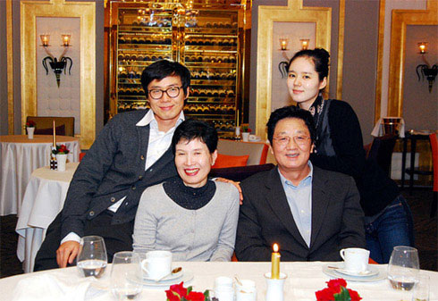 照片中,韓佳人親昵地倚著公公延圭真的肩膀,一家人顯得非常和睦,場(chǎng)面很感人。