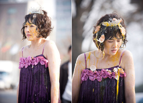 金善雅最近在《City Hall》制作發(fā)布會(huì)上說:“這輩子還沒挨過這么多雞蛋的打。一般我不會(huì)哭,可那天無數(shù)個(gè)雞蛋打在身上后,不知怎么就哭了。臉、脖子,從頭到腳都腫了,現(xiàn)在想來也很后怕!