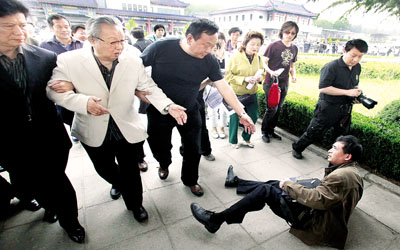 八寶山工作人員一度與希望提前進入廳內的群眾、媒體發(fā)生了摩擦。為此,八寶山增派了數十名保安,拉起警戒線,五人一排,嚴密把守告別廳大門。