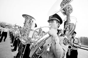 在即將到來的國(guó)慶60周年閱兵和群眾游行活動(dòng)中,他們是最為特殊的一支隊(duì)伍:第一個(gè)入場(chǎng),最后一個(gè)離場(chǎng);不受檢閱,但用45首樂曲 (部分曲目重復(fù))控制著整場(chǎng)慶典的節(jié)奏。