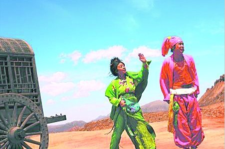 《三槍》主演花花綠綠的裝扮相當(dāng)惹眼,原來(lái)是張藝謀有意為之,“我想的徹底是鮮艷的,要讓人看了就炸起來(lái)那種(感覺(jué)),完全不要按常規(guī)去想,咱先弄強(qiáng)烈,再往回收好辦!彼滓彩强桃庾非,“這個(gè)綠是水綠,果綠,就是俗一點(diǎn)……顯得廉價(jià)了一點(diǎn),就百家衣,跟萬(wàn)民傘似的,很刻意,要這種自由拼貼!