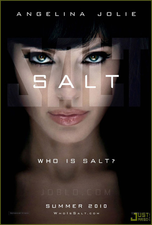 海報(bào)中的文字除了電影名稱、上映時(shí)間和朱莉名字之外,還包括影片宣傳詞“誰是紹特(WHO IS SALT)?”使得影迷心中已生懸念。