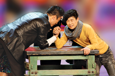 而昨天,孫紅雷和小沈陽(yáng)也首次正面回應(yīng)了兩人在拍戲之間的打架傳聞——兩人在節(jié)目現(xiàn)場(chǎng)掰起了手腕,而剛剛跳完勁舞的孫紅雷竟然輸給了瘦弱的小沈陽(yáng)。瞿婧宇