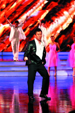 張藝謀親自下場(chǎng),《三槍》的兩位男主演也紛紛獻(xiàn)藝。小沈陽與阿寶現(xiàn)場(chǎng)飆歌,孫紅雷也不甘示弱,和幾位專業(yè)舞蹈演員激情共舞,霹靂、倫巴輪番上場(chǎng),力證自己也是個(gè)多才多藝的演員。看著孫紅雷和小沈陽又唱又跳,在一旁當(dāng)觀眾的張藝謀和閆妮笑得很開心!度龢尅烽_拍時(shí)曾傳出孫紅雷和小沈陽不和,乃至大打出手的消息。今年6月上海電影節(jié)期間,孫紅雷從《三槍》片場(chǎng)帶傷趕來出席,也側(cè)面證實(shí)了這一傳聞。不過,在電視鏡頭面前和張藝謀的注視下,兩人表現(xiàn)得十分和諧,還現(xiàn)場(chǎng)掰手腕,結(jié)果是人高馬大的孫紅雷輸給了小沈陽。后來有小沈陽的粉絲上臺(tái),一邊熊抱小沈陽,一邊喊“我愛你”,還不忘自我介紹說是來自杭州的。一旁的孫紅雷聽到后淡淡地說了一句話:“我也是杭州來的!贝撕螅挥袡C(jī)會(huì)就不斷重復(fù)這句話,不知道是調(diào)侃小沈陽的粉絲還是暗地諷刺對(duì)方,抑或?qū)]有粉絲擁抱自己表示不滿?