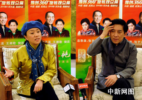 中新網(wǎng)北京1月24日電 (記者 應(yīng)妮)許多人來(lái)看《印象·大紅袍》是沖著張藝謀的大名來(lái)的。但演員們透露,《印象·大紅袍》從立項(xiàng)以來(lái),張藝謀只來(lái)過(guò)武夷山一次,還是在為演出選址的時(shí)候。對(duì)“左膀右臂”王潮歌和樊躍首創(chuàng)的、世界唯一的實(shí)景電影,張藝謀也只還是聽(tīng)說(shuō)過(guò)還沒(méi)看過(guò)。