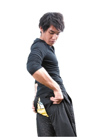 藍(lán)正龍?jiān)趧≈酗椦葜麅尚宰骷蚁暮徒,因(yàn)榇篝[電影首映會(huì),被判到幼兒園服158個(gè)小時(shí)的勞動(dòng)役。為了幫小朋友撿布偶,他爬到樹上,沒想到不慎失足,樹枝勾住褲子,狼狽不堪地倒栽蔥掛在樹上(右上圖)。這場(chǎng)戲雖然只有短短的幾分鐘,卻足足拍了9個(gè)小時(shí)。藍(lán)正龍表示,以前拍廣告時(shí)曾有吊鋼絲的經(jīng)驗(yàn),但倒吊卻是第一次,“倒吊的時(shí)候,頭有點(diǎn)昏昏的,而且讓我真的體會(huì)到什么是眼冒金星!钡钭屗y為情的是,“得在鏡頭面前露出海綿寶寶內(nèi)褲,讓我有點(diǎn)小尷尬!