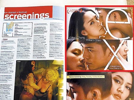 中新網(wǎng)5月14日電 阿嬌(鐘欣桐)因前年受艷照事件影響,事業(yè)掉落谷底,她近來(lái)以電影《前度》復(fù)出影壇,又獻(xiàn)銀幕初吻又和男主角陳偉霆泡鴛鴦浴,力搏翻身。電影公司強(qiáng)打她的電影情欲照,昨天,戛納影展的每日特刊《VARIETY》以及《The Daily》都出現(xiàn)宣傳海報(bào)。