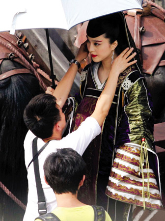 陳凱歌新片《趙氏孤兒》正在寧波趕拍,范冰冰的孕婦造型日前浮出水面。當(dāng)天正在拍攝一場趙朔攜莊姬進(jìn)城見晉王的戲份。范冰冰扮演的莊姬華服綾羅地端坐在馬車內(nèi),黑紗遮面,被趙文卓緊緊牽著。莊姬是“趙氏孤兒”趙武的生母,也是片中分量最重的女性角色。導(dǎo)演一喊卡,立即有三四個(gè)助手沖上去攙扶范冰冰下車,范冰冰以腹部高聳的造型亮相。雖然范冰冰早前在《蘋果》中也扮演過孕婦角色,不過像這樣夸張的“十月臨盆”的大肚造型還是比較罕見的。(辛文)