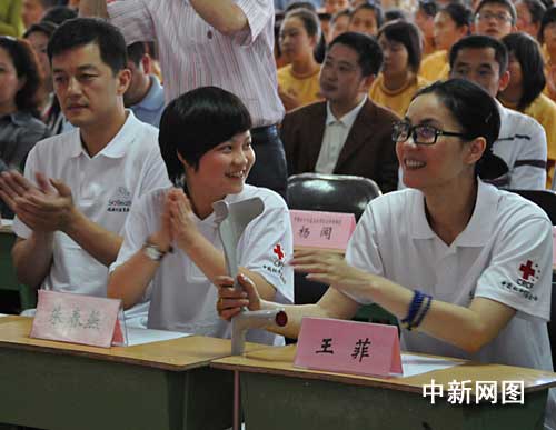 中新社綿陽五月十一日電(記者 唐偉杰 肖青)十一日上午,王菲、李亞鵬夫婦等護(hù)送三位災(zāi)區(qū)孩子返回北川,這是他們倡導(dǎo)發(fā)起的“汶川新家庭”助養(yǎng)計劃的第一批孩子。