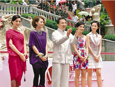 中新網(wǎng)7月15日電 成龍、容祖兒、蔡卓妍、范冰冰、劉亦菲五位兩岸三地的紅星難得在同一場合出現(xiàn),日前在廣州出席某地產(chǎn)開盤盛典,擔(dān)任典禮的嘉賓。當(dāng)天幾位明星均盛裝現(xiàn)身時,現(xiàn)場實時氣氛沸騰起來。