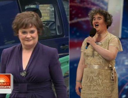 臺灣“今日新聞”報道,當畫了濃妝、染上頭發(fā)的蘇珊大嬸,穿著一襲紫色連身裙裝出場時,觀眾驚叫連連,連女主持人Meredith Vieira都瞪大眼睛問:你怎么了?蘇珊大嬸笑笑說自己只是在臉上擦了一點東西,她學化妝可是學得很快的。