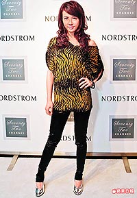 目前在美國(guó)10多個(gè)城市及加拿大都可看到“72變”,最快明年進(jìn)軍內(nèi)地、新加坡、馬來(lái)西亞市場(chǎng),她昨天被問(wèn)臺(tái)灣地區(qū)何時(shí)可買(mǎi)到“72變”服飾,笑說(shuō):“還不知道,我比任何人都希望越快越好!弊蛱飕F(xiàn)場(chǎng)展示她設(shè)計(jì)的1千件限量T恤,1件約1500元臺(tái)幣,當(dāng)場(chǎng)被搶購(gòu)一空,為公司進(jìn)帳臺(tái)幣150萬(wàn)元。