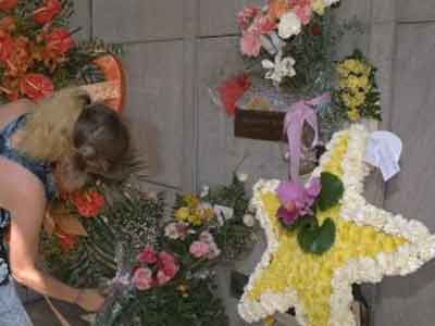 “今日新聞”消息,夢露葬于“西木區(qū)紀念公園”(Westwood Village Memorial Park),正上方的墓穴原本葬的是1986年過世的李察朋契爾(Richard Poncher),他在生前從夢露的前夫、美國棒球明星迪馬喬(Joe DiMaggio)手中買下這個穴位,但如今朋契爾的遺孀為了償還160萬美元的比佛利山莊豪宅房貸,只好拍賣亡夫的墓穴。