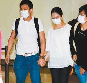 繼前晚6點,兩人首度公開牽手現(xiàn)身吉隆坡國際機場后,華仔與朱麗倩同晚10點多抵達香港,態(tài)度更加大方坦然,但眼見上百香港媒體推擠,一臉嚴肅的華仔全程小心呵護神情低調(diào)的朱麗倩,在媒體不斷推擠的混亂中,朱麗倩始終緊貼華仔,這回不僅牽著華仔,另一只手更是緊緊抓牢華仔的腕,華仔也不時摸撫朱麗倩的手,回應她這段守了24年的愛情。