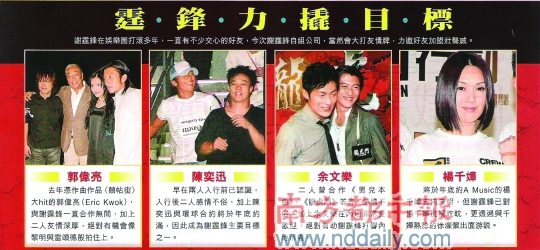 謝霆鋒自組公司的傳聞不是一天兩天的事兒了,昨天新鮮出爐的香港某周刊又重提“舊事”,稱盡管英皇開出不少優(yōu)越條件留人,但謝霆鋒“去意已決”,而老婆張柏芝亦是“無限量支持”,當(dāng)做新公司第一簽約藝人。據(jù)稱謝霆鋒心中已有不少“挖墻腳”的人選,目標(biāo)包括陳奕迅、楊千女華、余文樂等一幫友人,楊千女華對此以“還沒正式談,我自己都還不知道,告訴你什么呢?”作回應(yīng)!x霆鋒與英皇的合約尚未到期,為何老刮“跳槽”這陣風(fēng)?恐怕是:管它真亦假,先炒再說!