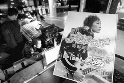 記者上午在星光現(xiàn)場(chǎng)看到,兩張陳琳的巨幅照片懸掛在舞臺(tái)上,臺(tái)前用將近一千朵菊花和百合花裝點(diǎn)成心形圖案。舞臺(tái)正對(duì)著的最后面,是陳琳生前發(fā)過的專輯的展區(qū),供歌迷悼念。
